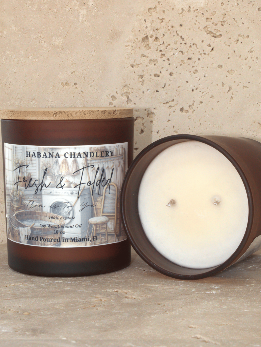 Custom soy blend candle made with phthalate-free fragrance oils, essential oils, and clean-burning cotton wicks.